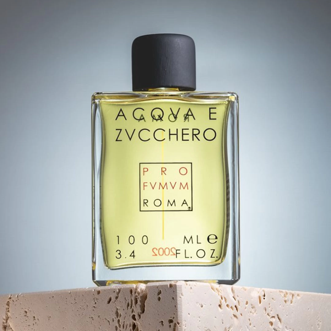 Candied fruit and fresh orange blossom on a cooling breeze — Acqua e Zucchero by Italian niche fragrance house Profumum Roma is a happy, fruity floral gourmand delight. A sweet treat that steps lightly but lasts on skin.