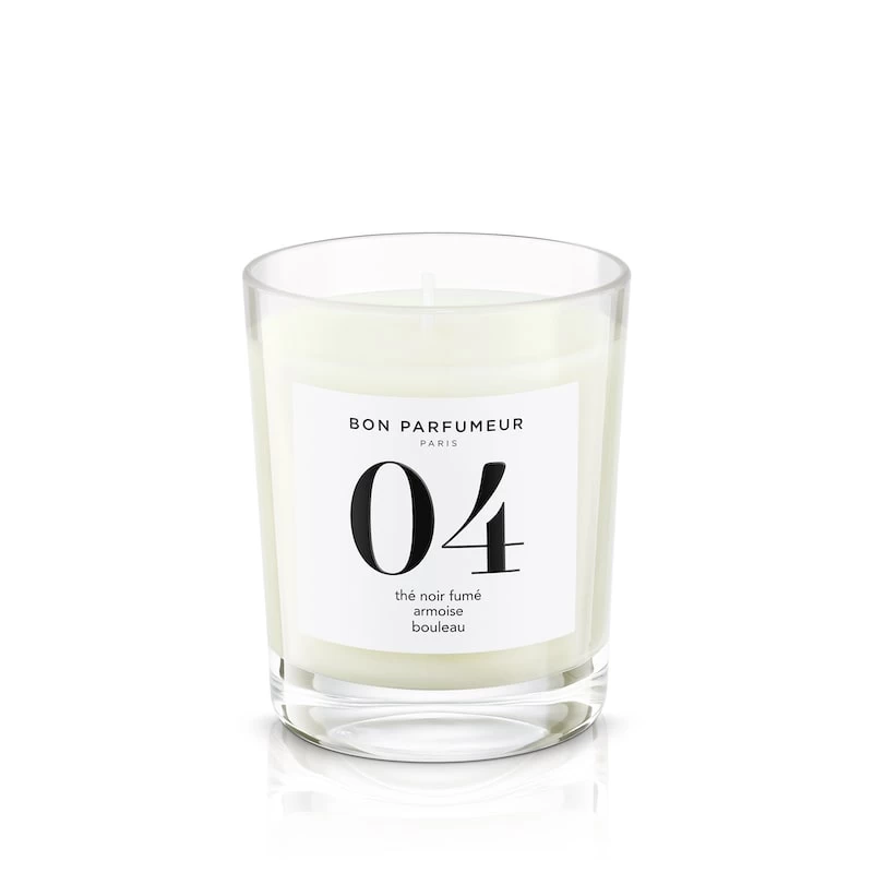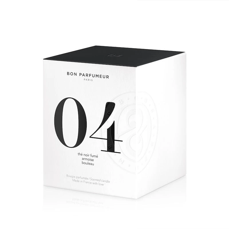 The first thing you are struck by in Bon Parfumeur’s Candle 04 is the smoky scent of Lapsang Souchong black tea. Aromatic mugwort (armoise) lends a surprising, unexpected freshness and birch tar adds deep, warm leathery undertones.