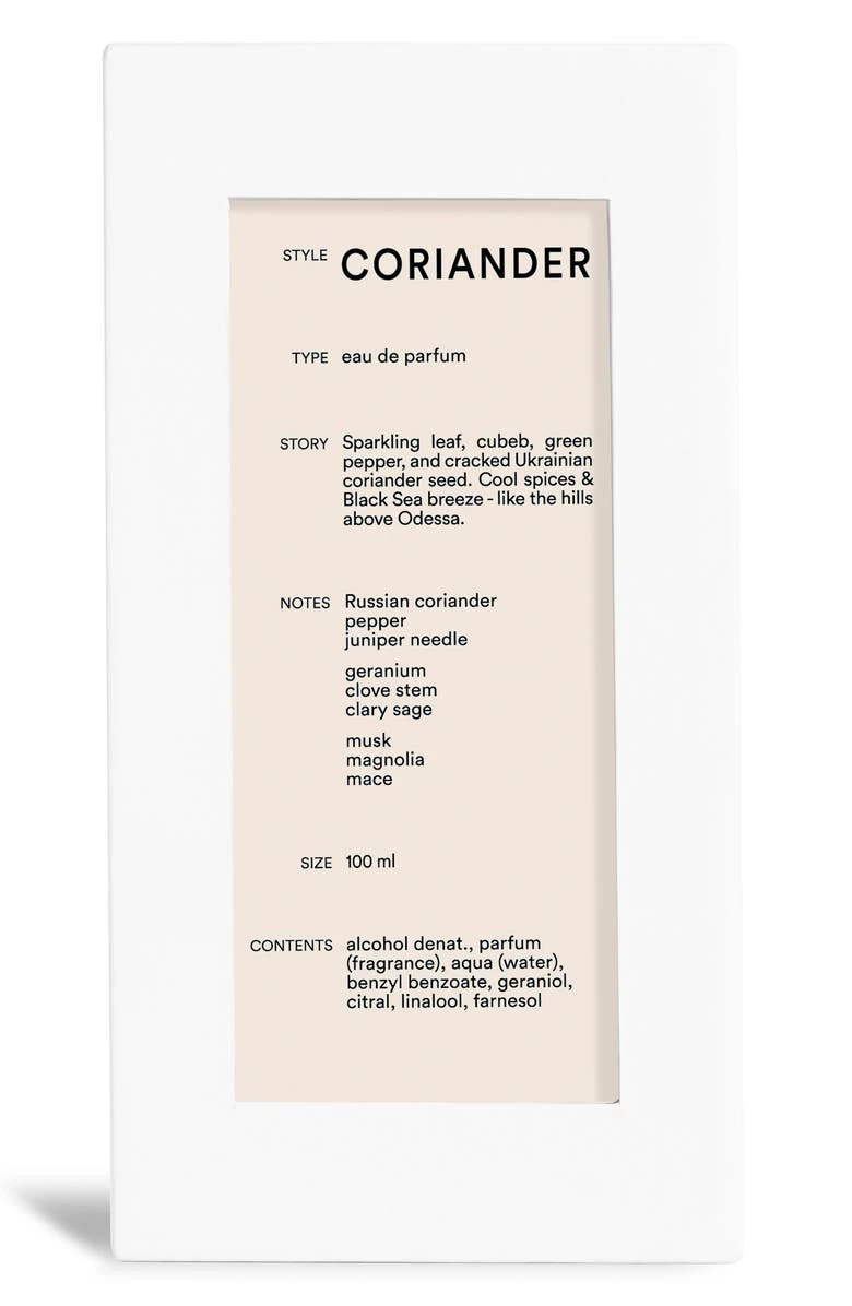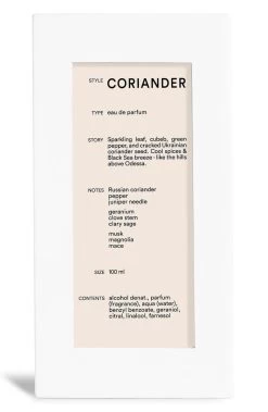 “Coriander is cool. It is a spice, but it is cool. When we think of spices, we think of warmth: nutmeg, ginger, clove, cinnamon. We picture roaring fires, winter warmth, or the tropical climes where these plants grow. Of course with some perfume wizardry you can turn these on their heads. But coriander is already cool. It is fresh, green, pungent, and evocative of the grass, the expanse of fields, the sweeping sea.