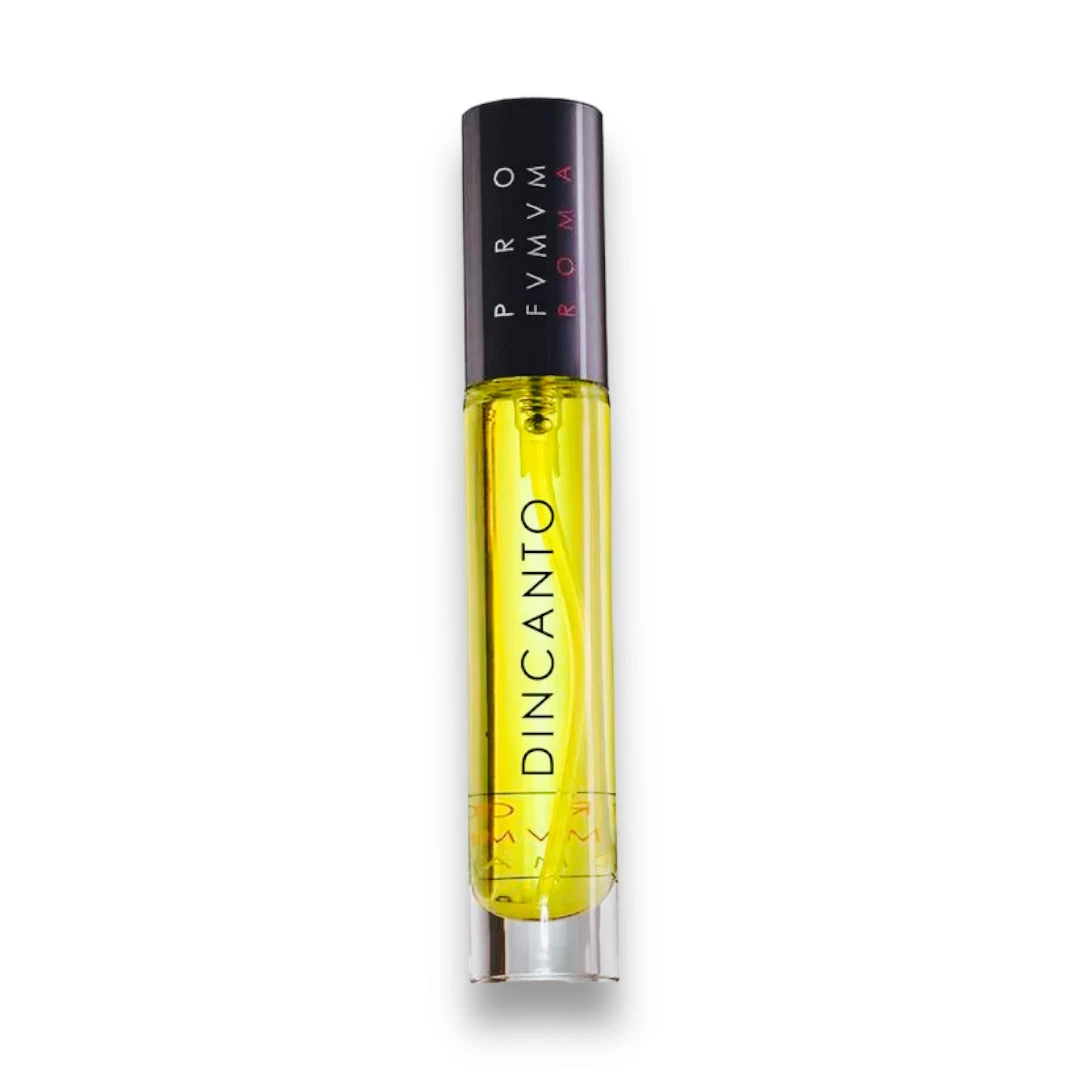 Dincanto is a compelling and sophisticated woody-floral, with prominent notes of orange and vanilla woven with creamy gardenia and jasmine. A notably clean patchouli and myrrh add a bit of spice and smokiness above the a rich and woody bed of dry cedar, smooth tonka and resinous guaiac wood. A bit more complex than the elegant minimalism signature to Profumum Roma fragrances, and absolutely exquisite.