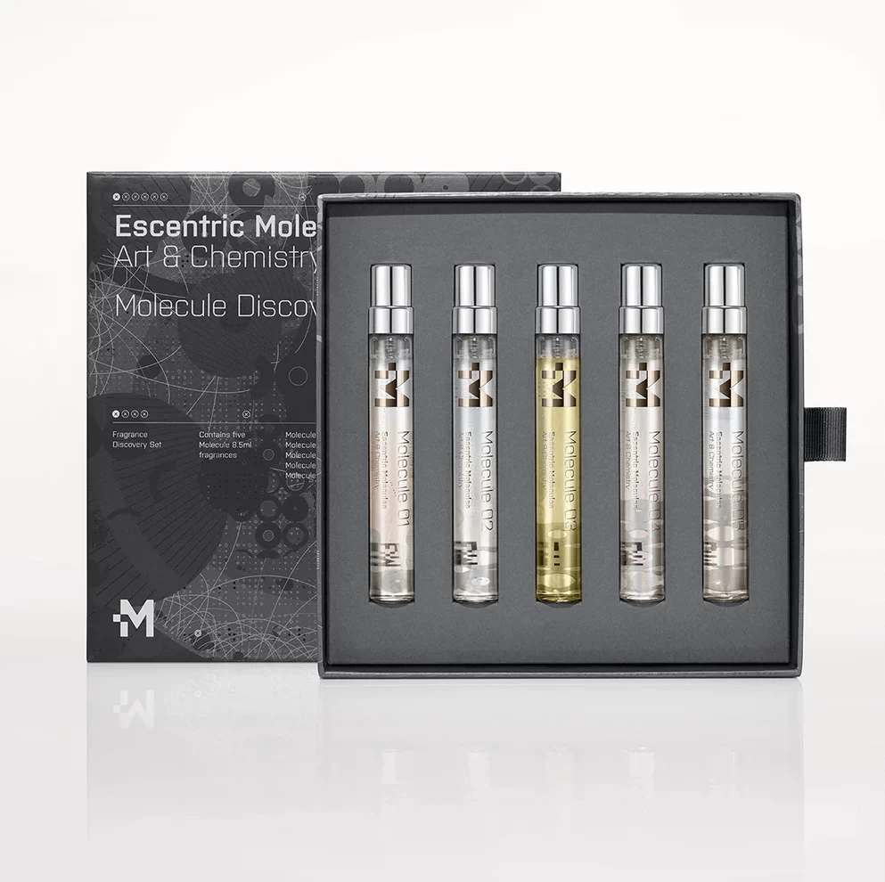 Escentric Molecules started the skin scent craze when they launched Molecule 01, the now-iconic ode to the sweet wood aroma molecule — Iso E Super™. Now you can experience their entire collection of single-molecule scents with the Molecule 8.5ml Discovery Set, containing five sleek travel sprays of each fragrance in the original line-up: