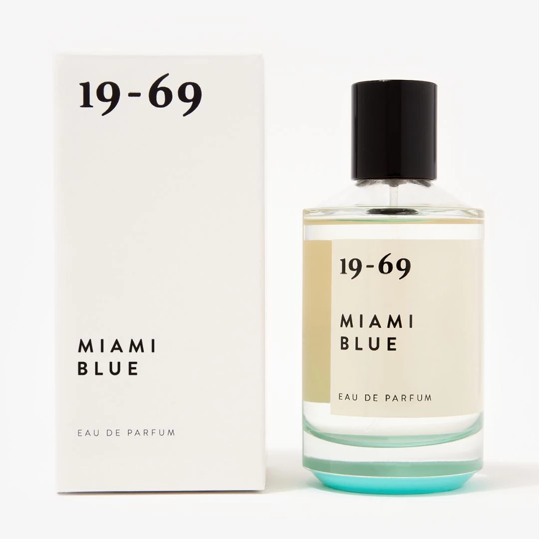 Miami Blue by 19-69 is dedicated to an era in Miami when champagne baths were on the charts. Referred to as Paradise Lost in the 1980s and the tv-show Miami Vice was all the rage. The scent is fresh and aquatic with notes of lemon, ginger and a wink and a nod to a certain white powder.