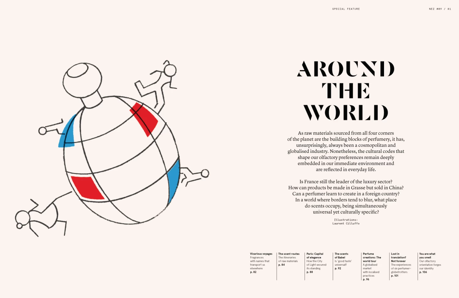 On a planet where borders often blur, fueled by globalization, what role do scents play? Simultaneously universal yet culturally specific, how do they contribute to our heritage? How do raw materials and fragrant compositions travel? This ninth issue of Nez takes you on an olfactory journey around the world through the prism of history, anthropology, science, art, literature, trade and marketing. The final destination? A greater understanding of the power that the sense of smell has in our lives.