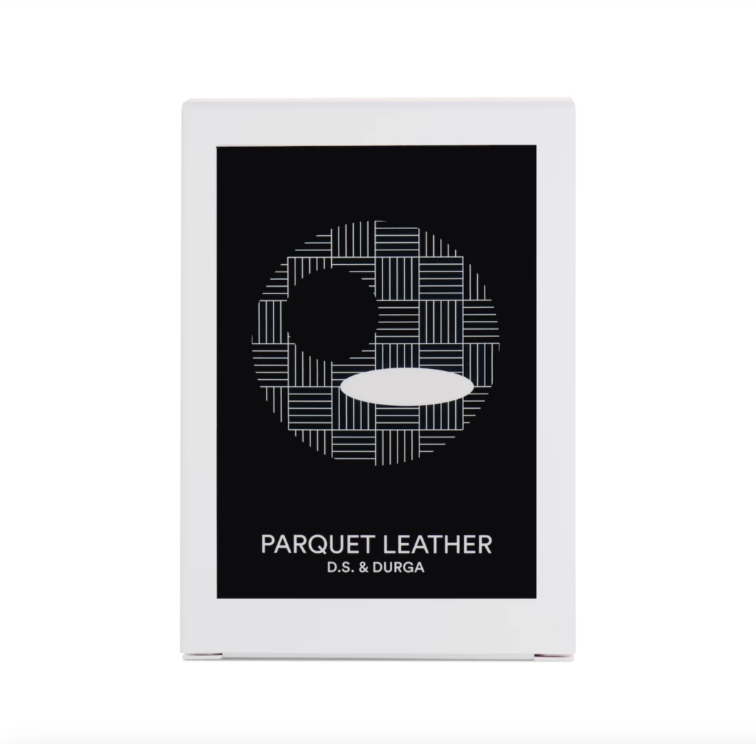 Parquet Leather Candle by DS & Durga is a basketball-inspired court vision of orange leather, maplewood, red oak parquet and fancy sneakers. Vegan. Animalic and timeless.