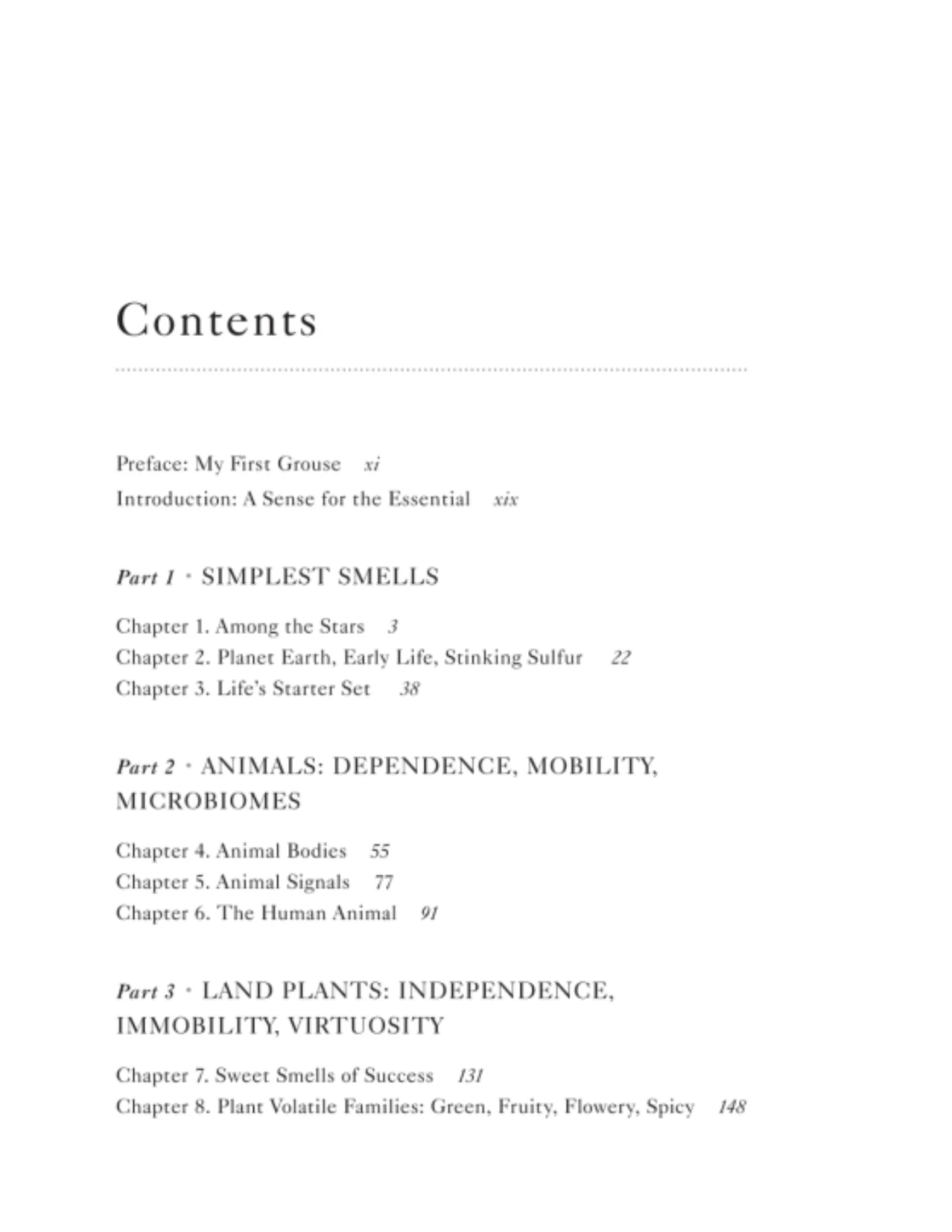 Through it all, McGee familiarizes us with the actual bits of matter that we breathe in—the molecules that trigger our perceptions, that prompt the citrusy smells of coriander and beer and the medicinal smells of daffodils and sea urchins. And like everything in the physical world, molecules have histories. Many of the molecules that we smell every day existed long before any creature was around to smell them—before there was even a planet for those creatures to live on. Beginning with the origins of those molecules in interstellar space, McGee moves onward through the smells of our planet, the air and the oceans, the forest and the meadows and the city, all the way to the smells of incense, perfume, wine, and food.