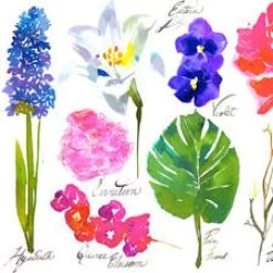 American Beauty’ roses, hyacinth, white lilies, carnation, green stems, violet leaf, quince, apple and cherry blossoms, cedar and oak wood.