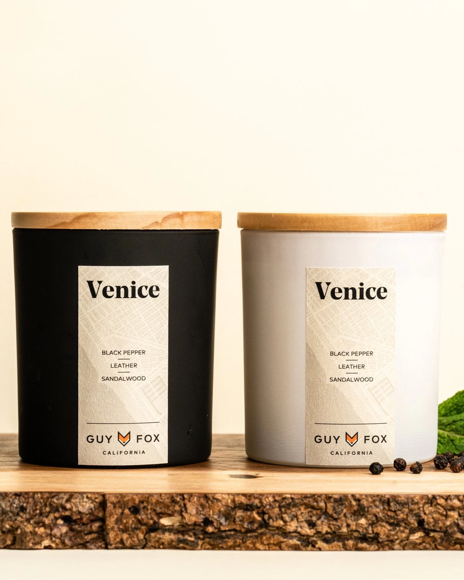 Guy Fox’s second “cologne” style candle after the success of their best-seller, PCH, the Venice is an unreal scent we’ve been wanting to drop for a while. It’s masculine, but on the sweeter side thanks to smooooth Sandalwood, plus enough oomph from the Black Pepper and Leather to cut it nicely. It’s a bright but subtle scent, that’s anything but seasonal. Have you ever smelled anything like it before? No way. Even though this is a “guy candle,” girls absolutely love it and it WILL LIKELY GET STOLEN (as frequently as our hoodies do) 😉