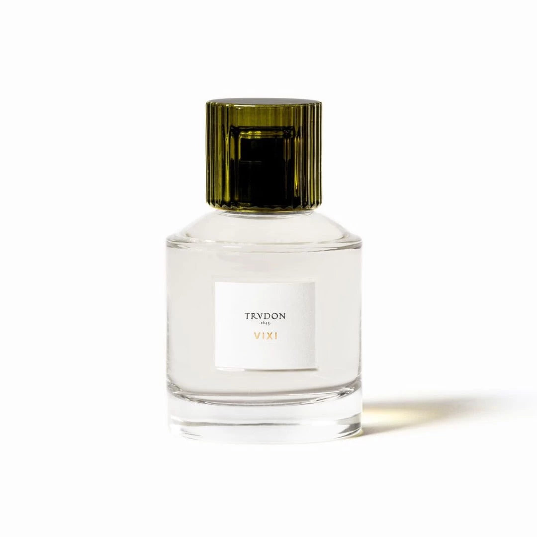 Trudon’s 100ml perfume bottles resembles the design of Trudon’s scented candles. Created by Pauline Deltour, the rippled-glass cap evokes the elegant silhouette of La Promeneuse. In a pine-green hue, the top counterbalances the transparent bottle, inspired by blocks of crystal.