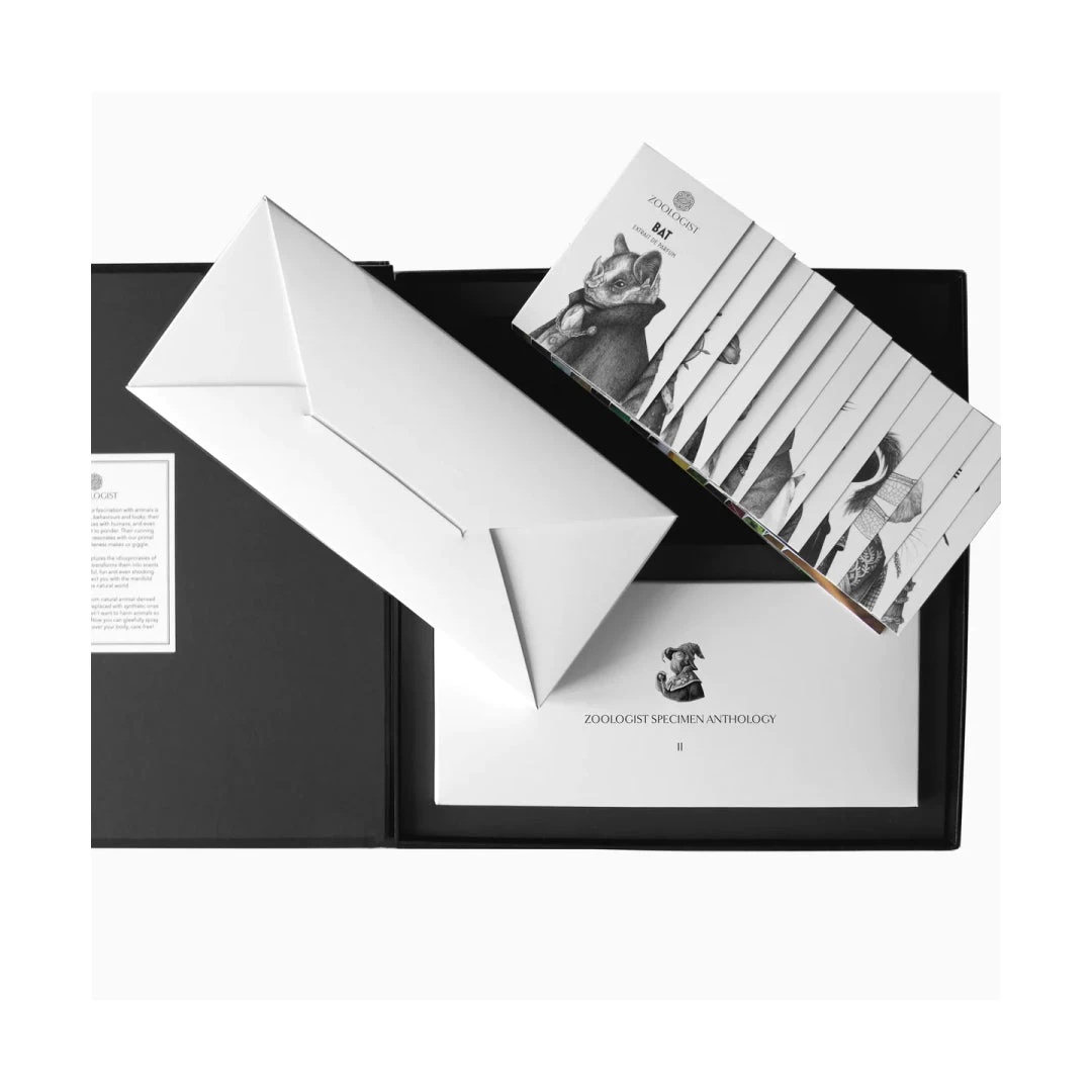 Explore the Zoologist menagerie with this deluxe box set of 30 Zoologist fragrances samples. Two cardboard envelopes, each holding 15 samples, present the collection elegantly. Perfect for any collector, or as a delightful gift.